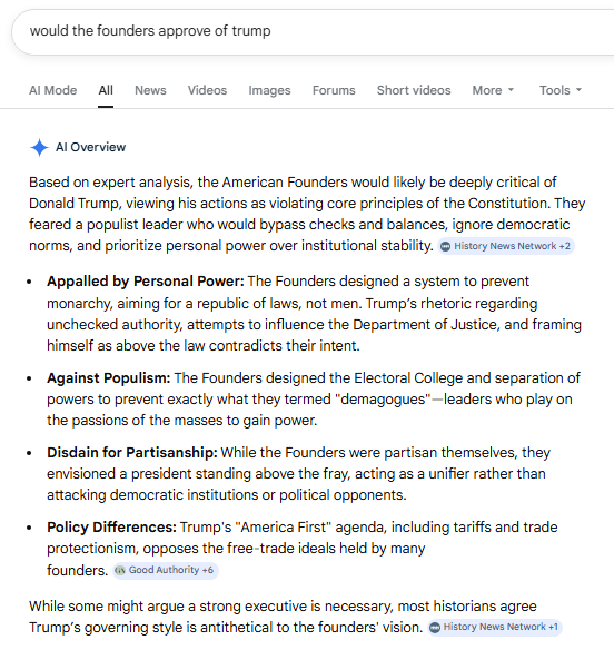 When AI was asked if the Founders of the United States would approve of Trump