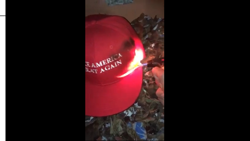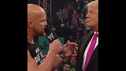 Pro Wrestler Sid Eudy (aka Sid Vicious / Sid Justice / Psycho Sid) crumples up Trump Flag and crams it down Opponents Mouth