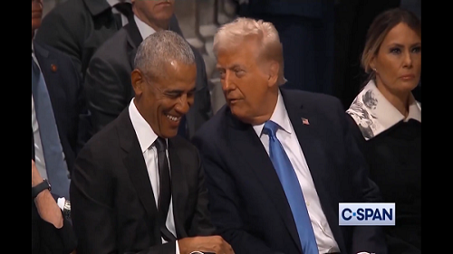 Trump yucking it up with Obama at Jimmy Carter's Funeral