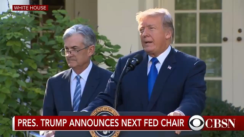 Trump names Jerome Powell as Federal Reserve Chairman in 2018