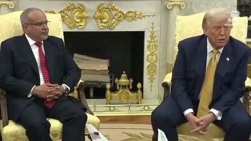 Trump meets with the Syrian President and former Al Qaeda fighter in the White House on Veterans' Day and sprays their Al-Shaar Cologne Brand on them and himself